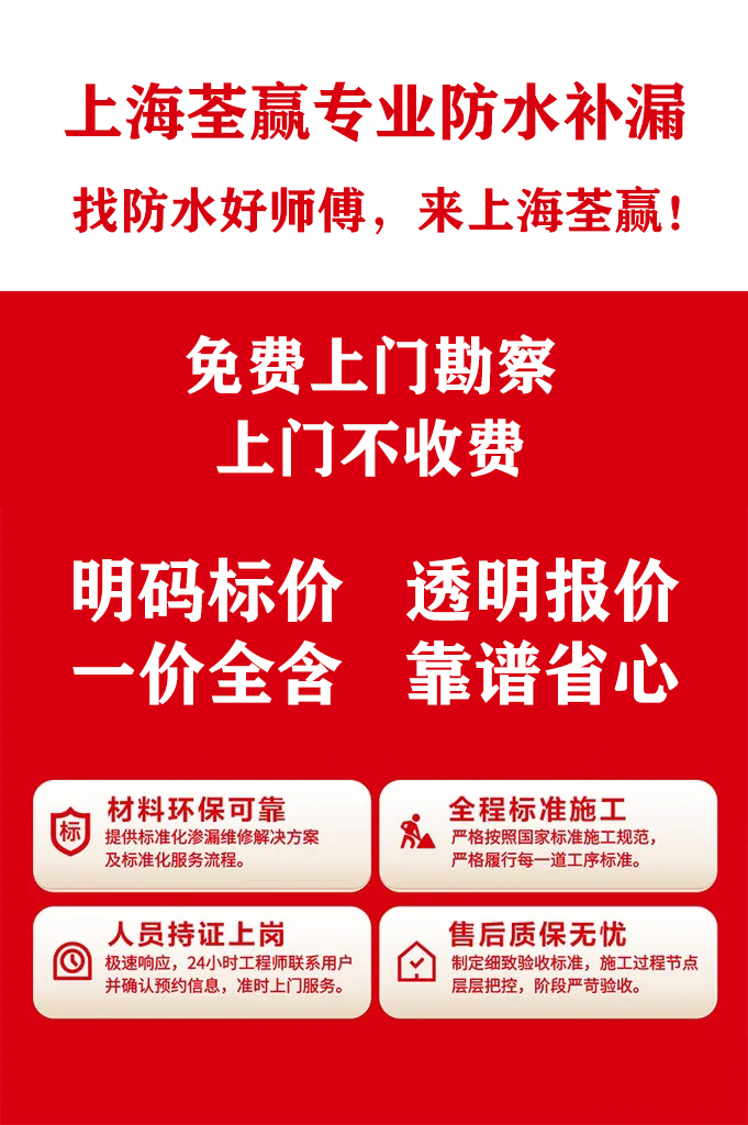 上海防水补漏行业正处于技术升级与市场整合的关键阶段。以上海荃赢防水补漏公司为主的头部企业,通过技术创新、质量控制、服务升级等多维度布局,正在重新定义行业标准。随着智能 检 测技术的普及应用、高性能材料的持续创新以及服务模式的深度变革,上海防水补漏行业有望实现从传统施工向专业化、标准化、智能化服务的转型,为城市建筑安全与居民生活品质提供更加可靠的保障.